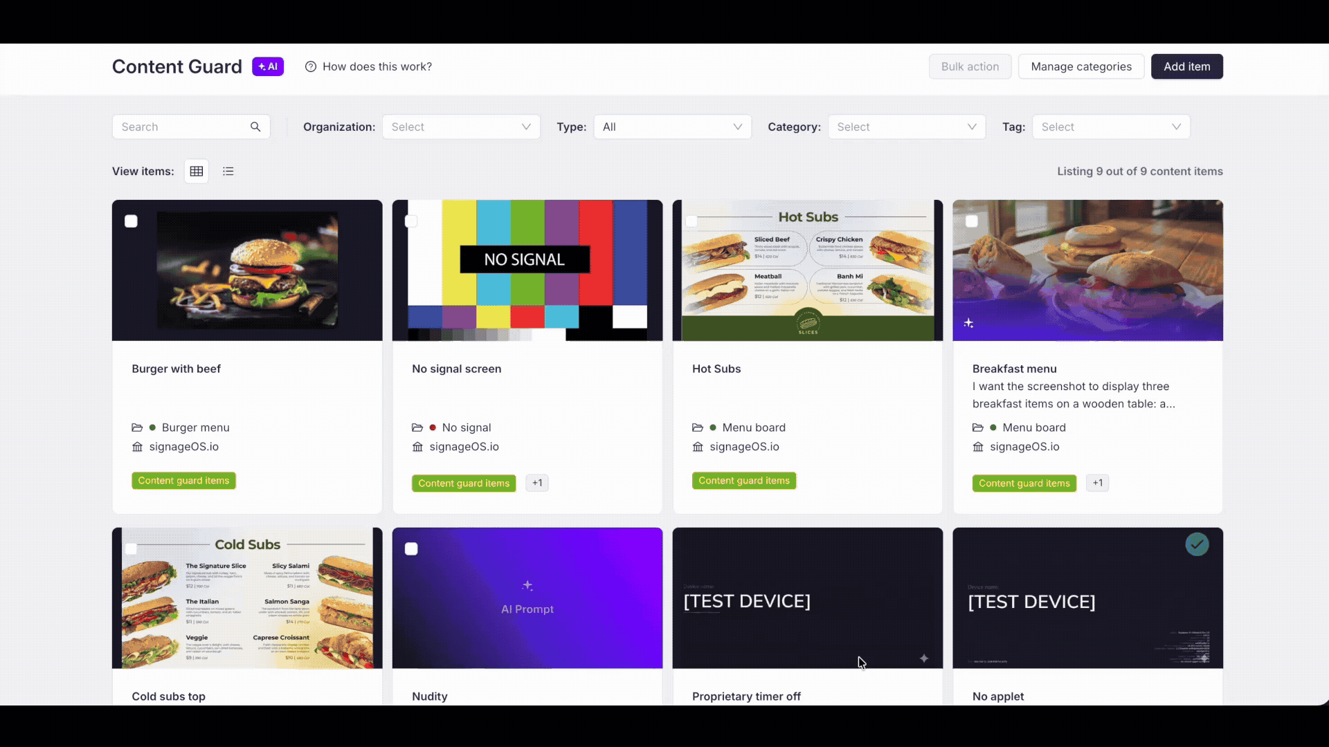 - Navigate to Manage Categories in the Content Guard menu.